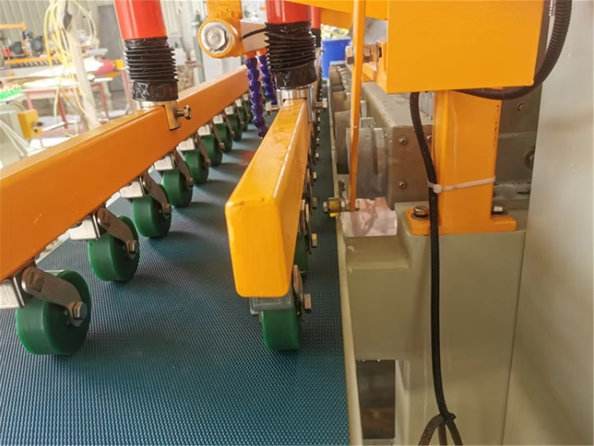 石材直線磨邊機通過高速旋轉(zhuǎn)的磨輪對石材邊緣進(jìn)行磨削,以達(dá)到平整、光滑的效果。設(shè)備通常采用電機驅(qū)動,通過傳動機構(gòu)帶動磨輪進(jìn)行高速旋轉(zhuǎn)。